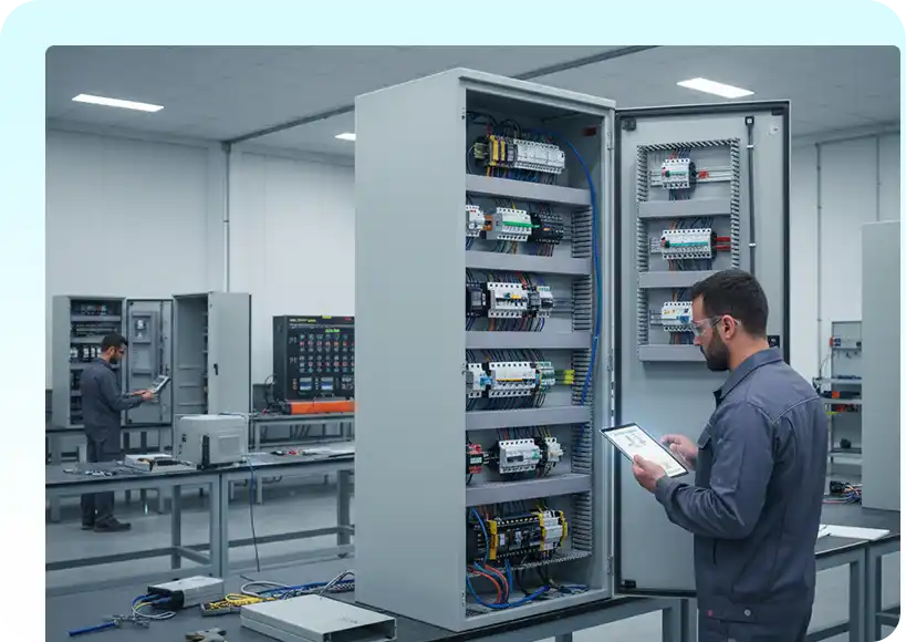 SOCER conçoit et fabrique des armoires électriques haut de gamme dans ses ateliers, en respectant les normes de sécurité, de qualité et de performance.