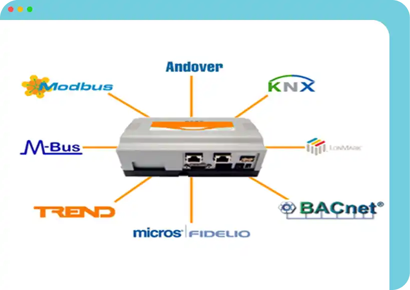 Nos plateformes sont compatibles avec les principaux protocoles ouverts du marché : BACnet, KNX, Modbus, M-Bus, LONWORKS®, OBIX, Trend, Andover, Fidelio, Micros, etc.